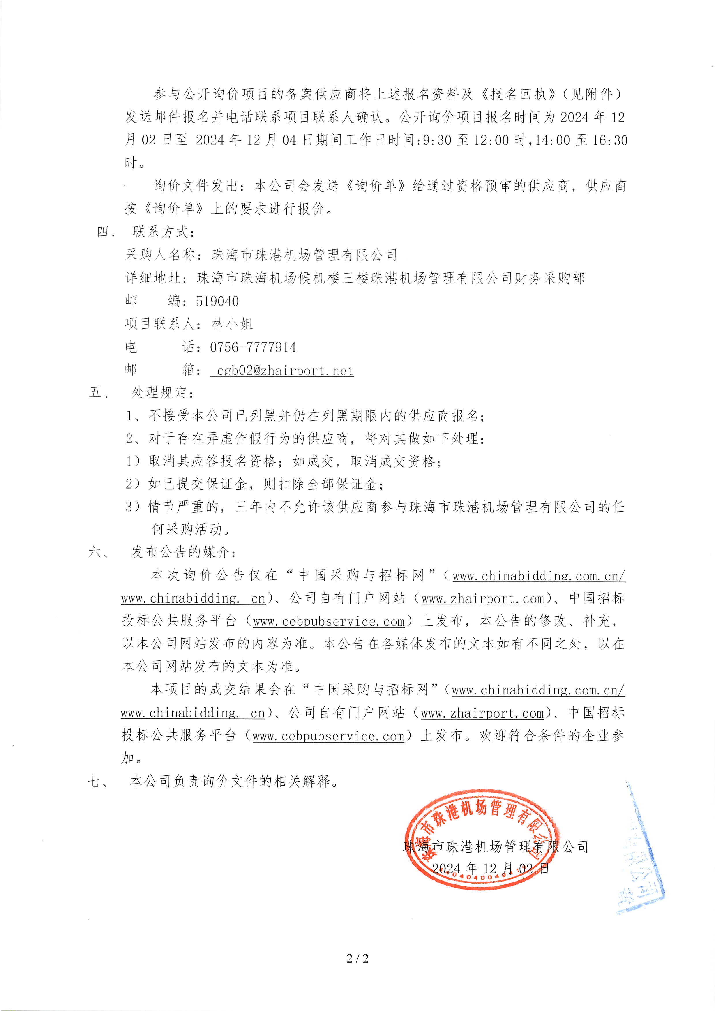 珠海机场跑道安全评估及外来物防范管理评估项目公开询价公告