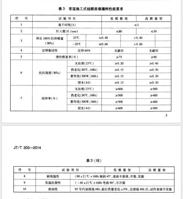 2.4 物资质量标准: 按《公路水泥混凝土路面接缝材料》(JT/T203-2014)表3执行。